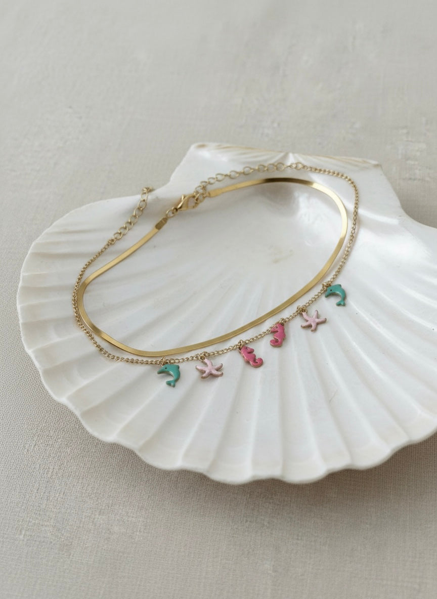 Ocean Charm Gold Chain Bracelet